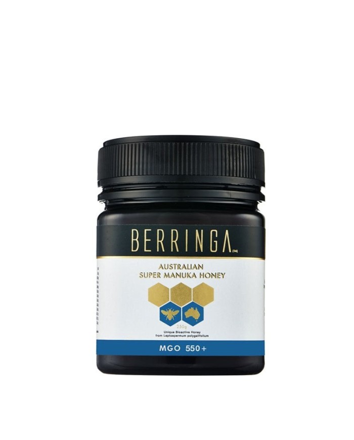 Il Miele Super Manuka Berringa è 100% naturale, senza l’aggiunta di ingredienti artificiali e dal gusto delizioso. Il miele di manuka berringa è un miele anti batterico con la più alta concentrazione di MGO fra tutti i mieli del mondo! Contiene un’elevata capacità antibatterica. Adatto sia per uso alimentare che topico. Il Miele di Manuka 550 MGO è ricco di Metilgliossale alimentare(MGO). I benefici di questo miele sono apprezzabili non solo nella cura della pelle, ma anche dall’apparato digerente e del sistema immunitario.