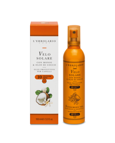 Velo solare olio spray no gas protezione bassa per capelli con Monoi & Olio di Cocco. Protettivo e lucidante
